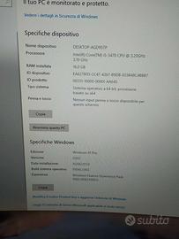Vendo pc fisso Intel core i5-3470 CPU 3.20GHz 16 giga di ram SSD 250 Scehda video AMD RADEON RX 560 series