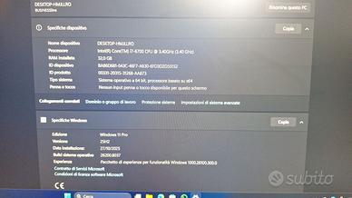 Processore Intel i7 6700 3.40 ghz Ram 32 gb velocità 2133 mhz Scheda grafica 4 gb nvidia geforce gt 740 Hard disk 1 tb Wifi Sistema operativo Windows pro 11 64bit Monitor Samsung hdr Tastiera gaming meccanica logitech G512 Mouse logitech G502 hero con pesi per calibrazione Casse trust 2.1 Prezzo da concordare ritiro a mano