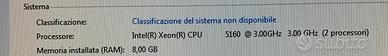 PC Fisso - n°2 Processori Intel Xeon 5160 3GHz - Scheda Video GeForce 8800 GT - RAM 8Gb - HDD 500Gb - Lettore CD - Alimentatore 600W Buone/Ottime condizioni Non spedisco E' fermo da tempo Per ulteriori info contattatemi - Accetto offerte