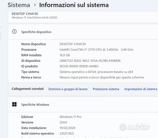 pc fisso Dell i7 compatto e potente misura 28 x 31 x 9 cm scheda video DEDICATA FULL HD 2 dischi...uno SSD + 1 HDD DA 500GB uscita HDMI WIN 11 PRO PHOTOSHOP 2024 Office installato garanzia 1 anno