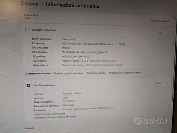 Vendo per inutilizzo PC fisso Desktop Asus M11BB con processore AMD A4-6300 APU with Radeon Graphics e scheda video AMD RADEON HD 7300 series 1GB. Memoria ram composta da 4 listelli per un totale di 11gb aggiornabile. 2 hard disk: 1 SSD da 160gb e un altro Hard Disk da 1TB. Windows 11 già installato e resettato pronto all'uso. Lettore di schede sd, masterizzatore di cd/dvd, 8 porte USB, scheda WiFi a doppio canale: 2,4 e 5 GHz. Pc perfettamente funzionante in ogni sua parte e tenuto sempre con cura. Senza nemmeno un graffio, come nuovo. Disponibile all'installazione di software e/o programmi personalizzati specifici a propria scelta con piccola aggiunta di denaro da concordare. Per qualunque informazione, non esitate a contattarmi. Ritiro disponibile a: Paderno Dugnano o Cinisello Balsamo