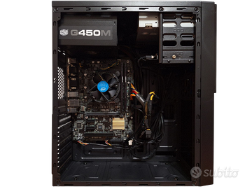 Computer fisso Vultech ricondizionato composto da scheda madre Asus H110M-C LGA1151, CPU Intel Core I5-7400 da 3.00 gHz socket 1151, 16 gB di RAM DDR4 Fury 2400 mHz, 500 gB di SSD, USB 3.0, alimentatore PSU Cooler Master G450M semimodulare, sistema operativo Windows 11 Pro 64 bit a 165 euro.