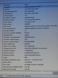 •Sistema Operativo: Windows 10 Pro 64bit, attivato e aggiornato