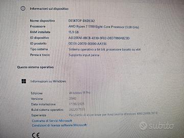 vendo PC fisso HP omen con rizen 7 1700 16gb RAM 2666 NVME M2 512 GB + 500 GB hdd scheda video AMD RADEON 580 8GB Windows 11
