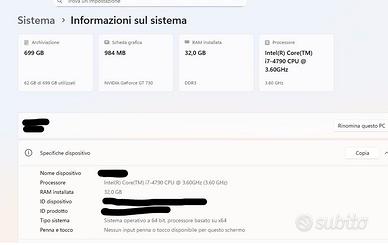 Vendo PC fisso completo e pronto all’uso, ideale per ufficio, lavoro da casa, studio professionale o uso domestico.