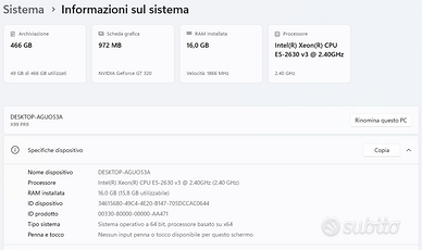 Vendo causa inutilizzo pc fisso workstation.