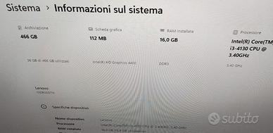 PC DESKTOP LENOVO THINKCENTRE E73, CPU INEL I3-4130 3.40 GHz, 16 GB RAM, SSD 500 GB, DVDRW, WINDOWS 11 PRO LICENZIATO (VERSIONE 25H2) FUNZIONANTE E PRONTO ALL'USO!