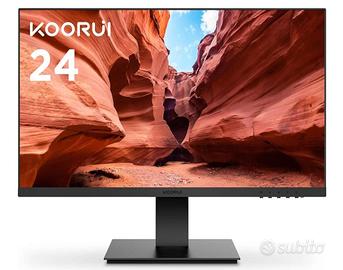 "KOORUI Monitor 24"" FULL HD, (1920 x 1080, 75 Hz, VGA, HDMI), Flicker Safe, 99% sRGB, Tempo di Risposta 5 ms, Reclinabile, Nero"