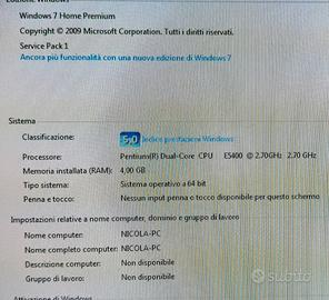 Vendo pc Pentium dual Core 2,70 GHz , windows 7 home premium.