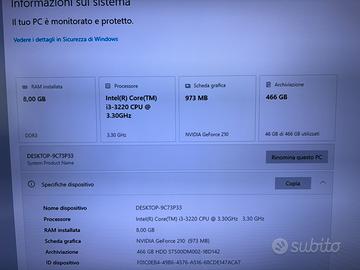 Pc fisso windows 10 piu monitor hp 22” connessione wirless bt e wifii con mouse e tastiera. Intel i3 3.30 Ghz Ram DDR3 8 GB HD 500 Gb Scheda video Nvidia Geforce 210 1 GB Cavi inclusi buonissima macchina veloce e reattiva Ottimo scuola lavoro e streaming Emiliano