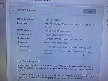 Pc scheda video 1660 6gb Hard disk 1tb Proccessore pentium g4600ghz Ram 8gb Per info contatatemi