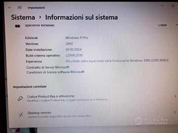 Vendo pc fisso con Windows 11 caratteristiche nelle foto Vendo causa inutilizzo Con antenna Wi-Fi e Bluetooth 5.1