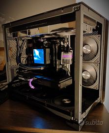 Computer da gaming assemblato con componenti nuove. Performa ottimamente in 1440P a dettagli massimi. Full Tower a doppia camera, con doppio vetro temperato, illuminazione RGB sincronizzabile e dissipatore con display LCD.