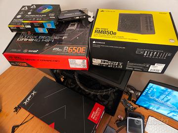Vendo per passaggio a pc mini-itx il seguente pc: - MOBO: Asus Rog Strix B650E-F Gaming wifi socket AM5 (wifi 6e, pcie 5.0 sia per gpu che per nvme)(questa scheda madre è la top di gamma tra le b650) - CPU: Amd Ryzen 7 7700 - GPU: AMD RX 7900xt 20GB di VRAM (in media va un po' di più di una nvidia rtx 5070 con il pro di avere 20GB di vram e il contro di avere prestazioni inferiori in ray-tracing)(custom XFX) - PSU: Corsair RM850E da 850w ATX 3.0 (fully modular) - RAM: Corsair Vengeance RGB 32GB (2×16GB) DDR5 6000MT/s CL30 (30- 36- 36- 76) 1.40V (codice: CMH32GX5M2B6000Z30K) - SSD: NVMe M.2 Fanxiang S880 da 2TB, lettura fino a 7300MB/s, scrittura fino a 6800MB/s (pcie gen4) - 4 Ventole Arctic P12 PWM PST A-RGB + 2 Ventole Arctic P14 PWM PST A-RGB - AIO: Dissipatore a liquido all in one Arctic Liquid Freezer II 360 A-RGB (utilizza le stesse ventole montate nel resto del case, ossia le P12 PWM PST A-RGB) - Cavi sleeve neri per cpu, gpu e scheda madre + connettore 90 gradi A-RGB per il cavo 24 Pin della motherboard - Filtri antipolvere - Win 11 installato Non esitate a scrivermi per maggiori informazioni. Se volete posso anche effettuare eventuali benchmark per cpu, gpu o ssd.