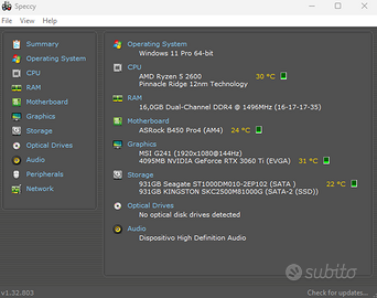 Pc come da scheda tecnica allegata in foto. ottime condizioni, perfettamente funzionante.