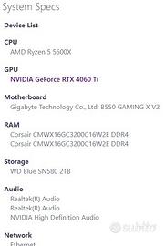 - RAM 32GB (2x Corsair DDR4 da 16gb)