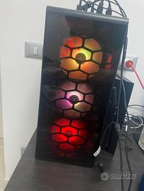 pc gaming usato 2 anni. Gira benissimo su tutti i videogiochi per info scrivetemi! Funziona tutto perfettamente nessun problema. Ventole funzionanti. LED regolabili tramite software installabile. Tutte le bocchette usb funzionanti. NESSUN PROBLEMA.