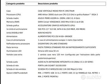 PC gaming con tastiera da Gaming, escluso monitor, le caratteristiche del PC nell'immagine dell'annuncio