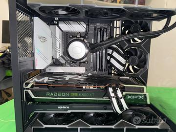 vendo pc gaming assemblato 6 mesi fa monta: scheda madre: asus rog strix b550-a gaming CPU: amd ryzen 7 5800x RAM: 16x2 GB ddr4 3600 mhz corsair vengeance (2 slot liberi sulla scheda madre per upgrade) AIO: cooler master masterliquid ml360 GPU: radeon xfx merc319 rx 6800xt 16GB PSU: cooler master MWE 750w 80 plus gold 9x ventole asia horse nyota ultra asia horse venom hub CASE: mars gaming mcv4 EDZY psu cable extender bianchi e neri no affaristi no perditempo per singoli pezzi fare un offerta