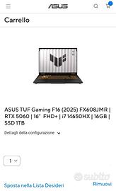 Notebook ASUS TUF gaming f16, modello 2025, nuovo, ancora sigillato e completo di : - Design moderno e robusto - Tastiera illuminata per un esperienza di gioco immersiva - Logo Tuf su laptop esterno - Scatola originale - Sigilli integri - Numero di serie visibile in foto - Accessori originali inclusi - Garanzia casa madre Ideale per prestazioni da gaming ma adatto anche per lavoro, studio o uso personale. Sono disponibile per revisione e consegna a mano ( prov. Biella - Torino - Milano- Vercelli - Novara - Aosta )