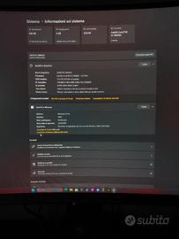Vendo pc da gaming, unico proprietario acquistato 20 mesi fa, tenuto maniacalmente bene, usato solo nel weekend e solo su giochi FPS non troppo pesanti. NON VENDO SEPARATAMENTE, quindi vendo tutto in blocco, Desktop+Monitor+Tastiera e mouse. Volendo anche la scrivania e la sedia, si può negoziare. • Scheda madre TUF GAMING B760M-BTF WIFI • SCHEDA VIDEO RTX 4060Ti da 8gb •RAM Corsair vengeance 32gb ddr5 rgb •Monitor ASUS TUF Gaming VG34VQL3A Monitor Gaming Curvo 34” pollici WQHD (3440 x 1440), 180Hz, 1500R, Extreme Low Motion Blur, FreeSync Premium Pro, 1ms (GTG), 125% sRGB, DisplayHDR 400, DisplayWidget, Nero, ancora in garanzia (ho disponibile anche la fattura). Per qualsiasi altra info e altre foto chiedete pure. Il pc non ha nessun difetto e funziona perfettamente. Tenuto sempre pulito. Disponibile per qualsiasi prova. Vendo per cambio completamente del hobby.