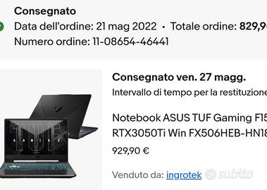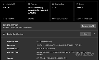 Intel i5 11400h Scheda video rtx 3050ti 4 gb 16 gb ram compreso di caricabatterie poco usato in buone condizioni