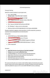 Vendo pc gaming , in buone in condizioni motivo vendita , perche non viene piu usato , componenti scheda video 2060 asus rtx , i altri componenti sono allegati con la foto , grazie
