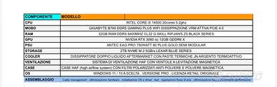 • Scheda Madre: Gigabyte B760 Gaming Plus WIFI (Wi-Fi 6 integrato).