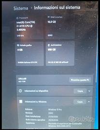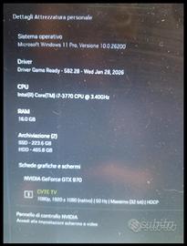 Vendesi PC gaming entry level, con alimentatore 750 Watt Tacens Aenima, scheda madre MSI B75MA, processore CPU Intel i7 3770, RAM 16 giga (2x8) espandibile a 32gb, scheda video dedicata Nvidia GeForce 970 Asus rog strix da 4 giga, hard disk SSD da 250 GB più hard disk secondario dati da 500 GB, tastiera e Mause in omaggio. Windows 11 Pro, pacchetto office, Adobe Photoshop e programmi vari pronto all'uso. Cavetteria inclusa. Ottimo per primi approcci al Gaming, per lavoro streaming e studio. PC abbastanza veloce e reattivo per qualsiasi uso, tasto di accensione invertito con tasto reset per una migliore reattività dello stesso. Per ulteriori informazioni foto video scrivete tranquillamente senza impegno.