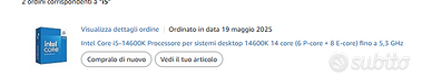 CPU: Intel Core i5-14600K (acquistato a maggio 2025)