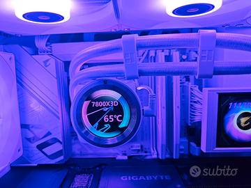 PC gaming workstation appena assemblato Ryzen 7 7800X3D B850M Aorus elite ax ICE WiFi (BIOS compatibile con ryzen 7 9800X3D) RAM 32 GB 6400 o 64 GB RGB 6000 *Prezzo attuale con 32 GB Corsair 6400 CL 36 White SSD M2 500 GB Acer RTX 5080 gigabyte gaming OC 16 GB (prestazioni superiori a RTX 5070 TI e della RX 9070 XT) PSU termaltake 850 Watt 80+ White ATX 3.1 PCI Express 5.1 Case phanteks XT Matx ARGB White dissipatore termalright RGB White LCD display LCD White edition per info PC 7 ventole ARGB PWR bianche controllabili da software gigabyte per effetti e velocità contattatemi per info fattura Amazon per la maggior parte dei componenti
