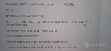 PC Gaming usato , ma in ottime condizioni , ogni sei mesi é stato smontato completamente, ripulito , cambiata la pasta termica nella CPU e GPU . CPU: AMD fx8350 , 4.0 Ghz 8core GPU:MSI 960 2GB OC "mai overclockata" Scheda Madre: Gigabyte 970A-DS3P Ram : 16gb Venegance DDR3 1600mhz Memory Hard Disk: 1TB ,Sata 3 , 7200rpm 6gb/s Dissipatore: Cooler Master Hyper 212 EVO. Case: Itek Invader + 3 ventole da 120mm + 1 da 140mm Alimentatore : 650watt. Volendo posso dare anche il monitor , Samsung 27 pollici .