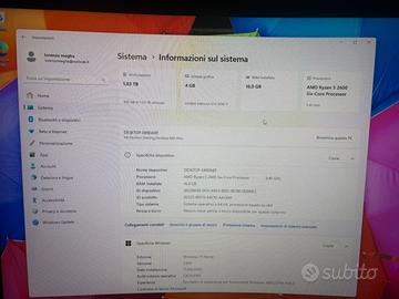 Vendo per passaggio a sistema superiore, PC Desktop HP Pavilion Gaming (Modello 690) in ottime condizioni estetiche e funzionali. Il computer è perfetto per il gaming leggero (Fortnite, GTA V, Valorant, Minecraft, Roblox) e velocissimo per uso ufficio, università o editing video/foto base. Specifiche Tecniche: • Processore: AMD Ryzen 5 2600 (6 Core / 12 Thread, fino a 3.40 GHz) – Prestazioni solide in multitasking. • Scheda Video: NVIDIA GeForce GTX 1050 Ti (4GB dedicati) – Ideale per giocare in Full HD. • Memoria RAM: 16 GB DDR4 (Potenziata per la massima fluidità). • Storage (Doppio Disco): • SSD 128 GB: Per un avvio di Windows in pochi secondi. • HDD 1 TB (1000 GB): Ampio spazio per giochi, film e documenti. • Sistema Operativo: Windows 11 Home originale, già configurato e pronto all'uso. • Connettività: WiFi integrato, Bluetooth, porte USB 3.1 frontali e lettore schede SD. Stato del prodotto: Il PC è stato tenuto con cura, pulito regolarmente e testato con giochi come GTA V (gira stabilmente sopra i 70 FPS). Case compatto dal design moderno con illuminazione LED verde frontale. Incluso nel prezzo: • Cavo di alimentazione originale.