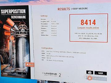 Pc hp perfettamente funzionante,l'ssd ha pochissime ore di utilizzo mentre l'hard l'hard disk è nuovo,il pc è ottimo per gaming,editing video,scuola,ufficio e didattica.E' possibile giocare con molti giochi recenti in full hd con impostazioni medie,supporta programmi come photoshop,davinci resolve,autocad ecc. Pasta termica appena cambiata Cpu i7-6700 Ssd 250gb + hard disk 1tb Scheda video da gaming msi GTX 1060 3gb ram 16gb Wifi e Bluetooth integrati Masterizzatore DVD dl Windows 11 pro originale Appena formattato e aggiornato Pronto all'uso