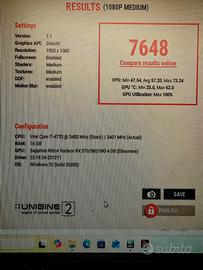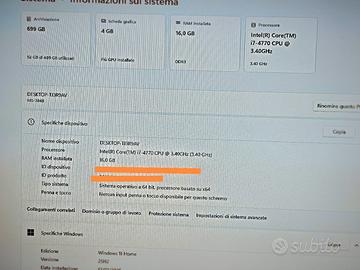 Pc gaming compatto,misure 35x26x16cm,in perfette condizioni,ottimo per gaming,editing video,scuola,ufficio e didattica.E' possibile giocare con molti giochi recenti in full hd con impostazioni grafiche medie,supporta programmi come photoshop,davinci resolve,autocad. Il case è nuovo e ha ancora la pellicola di protazione,pasta termica appena cambiata. Cpu i7-4770 con dissipatore a torre e ventola a led Ssd samsung 860 evo da 250gb piu hard disk da 500gb Scheda video sapphire nitro rx 570 4gb Ram 16gb Windows 11 pro originale Appena formattato e aggiornato Pronto all'uso Guarda fra I MIEI ANNUNCI PER VEDERE altri pc con configurazioni diverse