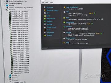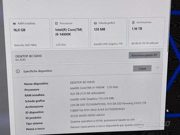 VENDESI PC GAMING TOP APENA ASSEMBLATO: - PROCESSORE I9 14900K 24C - 32T UP 6,30GHz E BEN 38Mb CACHE , LGA 1700 - SCHEDA MADRE NZXT N5 Z690 ATX WIFI INTEGRATO , USB 3.2 E USB C - RAM 16G (8G X 2) TRIDENT Z RGB DDR4 OC FINO A 4200MHz CL 18 - DISSIPATORE ANTEC VORTEX LUM 360 ARGB LIQUID COOLER TDP 280W - SSD M2 TRANSCEND 256G GEN 4 CON INSTALATO W 10 PRO 64 BIT FREE TRIAL AGGIORNABILE A W11 - SSD SECONDARIO RANXIANA S 101 1000G GEN 4 - ALIMENTATORE COOLER MASTER ELITE NEX N 700 80PLUS - CASE GAMING RGB SHARKOON AK6 VETRO TEMPERATO FRONTALE E LATERALE - GRAPHICA UHD 770 INTEGRATA , COSI OGNI UNO INSTALA LA SUA SCHEDA VIDEO A PICIMENTO - IL PC E TOP , POSSIBILITA DI PROVARLO PRESO MIO DOMICILIO - NON SPEDISCO - NON AFFARISTI O PERDITEMPO -- PREZZO 1050 EURO - CONTATTO , 3807974258