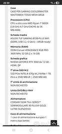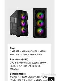 Vendo PC gaming completo perfettamente funzionante e pronto all’uso, ideale per giocare a tutti i titoli attuali in modo fluido 🔥 Il PC è velocissimo, silenzioso e tenuto in modo maniacale, perfetto sia per gaming che per lavoro. 🎮 Prestazioni: Giochi come Warzone, Fortnite, GTA V, ecc. girano fluidi Ottimo anche per editing, streaming e multitasking 💻 Componenti principali: RTX 3060 12GB Ryzen 7 5800X (8 core, super potente) 32GB RAM RGB 3600MHz SSD NVMe 1TB (accensione in pochi secondi) Scheda madre ASUS TUF Gaming con WiFi Dissipatore a liquido Corsair RGB Case Cooler Master con RGB ✨ PLUS: RGB personalizzabile (estetica top 🔥) PC pulito e sempre mantenuto bene Nessun lavoro da fare, colleghi e giochi subito 📦 Incluso: PC completo pronto all’uso 💰 Prezzo: 699€ leggermente trattabili 📍 Ritiro a mano (preferito) ✔ Possibilità di prova ❌ No perditempo / no scambi 👉 Vendo per passaggio a configurazione superiore