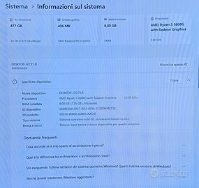VENDO PC GAMING LENOVO IdeaCentre Gaming 5 Gen 6 COME NUOVO USATO QUALCHE MESE NEL PC CE INSTALLATO WINDOWS 11PRO 26H1 + VELOCE DELLA 25H2 MA SE PREFERITE WINDOWS 11 25H2 POSSO INSTALLARLO POI AVETE ADOBE ACROBAT PROFESSIONAL. DESCRIZIONE DEL PC PROCESSORE : RYZEN 5 5600G 12 CORE DA 3.90GHZ - SCHEDA VIDEO RADEON VEGA 11 - SSD M2 512 GIGA - RAM DDR4 UN BANCO DA 8 GIGA - WIFI E BLUETOOTH. PC MOLTO POTENTE E VELOCE. POTETE VENIRE TRANQUILLAMENTE A CASA MIA A PROVARLO. VOLENDO CON 60 EURO IN PIU POSSO AGGIUNGERE UNA GIGABYTE GTX 1650 4GB OCZ GDDR6