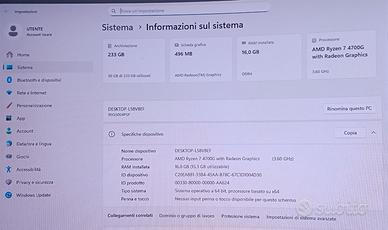 VENDO PC GAMING LENOVO COME NUOVO NEL PC CE INSTALLATO WINDOWS 11PRO 26H1 + VELOCE DELLA 25H2 MA SE PREFERITE WINDOWS 11 25H2 POSSO INSTALLARLO POI AVETE ADOBE ACROBAT PROFESSIONAL. DESCRIZIONE DEL PC PROCESSORE : RYZEN 7 4750G 16 CORE DA 3.60GHZ - SCHEDA VIDEO RADEON VEGA 11 - SSD M2 512 GIGA - RAM DDR4 UN BANCO DA 16 GIGA 3200mhz - WIFI E BLUETOOTH. PC MOLTO POTENTE E VELOCE. POTETE VENIRE TRANQUILLAMENTE A CASA MIA A PROVARLO.