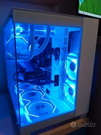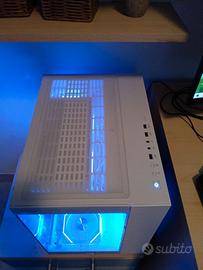 Il pc è così composto: 1 - case doppia camera con vetri temperati e 6 ventole argb 2 - alimentatore bronze 80 650w 3 - dissipatore cpu aio liquido MSI 240mm 4 - scheda video amd rx6600xt con scatola originale 5 - MB gigabyte b550 con 16g ram e ssd nvme 256g 6 - cpu ryzen 5 3600 7- tastiera meccanica ridotta + mouse + controller