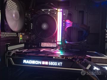 Gaming pc di fascia alta: GPU : R 6800 XT 16 gb varam (Ha le performance di una trx 3080 o di una rx 9060 xt da 16gb) CPU: Ryzen 5600 Cpu cooler: amd stock cpu cooler Ram : 32 gb Ddrr4 Corsair vengeance pro RGB Memoria: NVME 3 GEN da 256 gb. Sata ssd da 512 gb HHD da 1t Complessivamente ha 1,75 terabite di memoria. Psu: Corsair CX600 Case : msi atx tower. Ventole : c'è solo una nel retro del pc ma ne può ospitare altre. Per informazioni, benchmark o stress test scrivetemi. Ritiro a mano. No spedizione per motivi di sicurezza del pc. Il prezzo è trattabile.