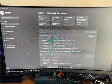 Vendo PC GAMING assemblato da zero più monitor curvo MSI con tastiera e mouse e tappetino.. Componenti : Scheda video NVIDIA GeForce GTX 1660 SUPER Processore Intel i5-6400 Scheda madre GIGABYTE Z260M-D3H RAM 2x4GB Viper Dissipatore a liquido mono ventola CORSAIR 1 Hard Disk 1TB Per altre info non esitare a contattarmi.. Astenersi perditempo!