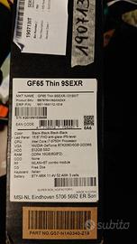 VENDO PC GAMING MSI GF65 THIN 9SEXR 1019XIT IN OTTIME CONDIZIONI CON SCATOLA E TUTTI GLI ACESSORI PER PASSAGGIO A PC FISSO