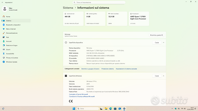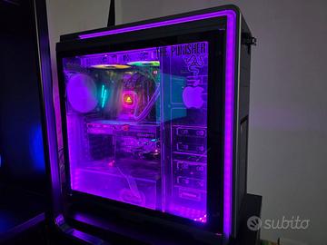 PC da gaming raffreddato a liquido RGB con finestra in vetro temprato perfetto per giocare in FHD, riesce a far girare tranquillamente titoli pesanti come ad esempio Forza Horizon e GTA V. Pasta termica della CPU recentemente cambiata. Scheda madre ASUS ROG Crosshair HERO 7 WIFI CPU AMD Ryzen 7 2700x 8 core 3.7 GHZ/4.3GHZ in turbo boost RAM 32gb Kingston Hyperx Fury 3200mhz (2x16gb) GPU Sapphire Radeon 6600 Eagle 8gb Raffreddamento liquido Corsair h150i Platinum 280mm RGB PSU ThermalTake RGB 1000W SSD NVMe Kingston 500GB Case Phantenks Entoo Luxo Full Tower RGB. Il PC viene fornito con Windows 11 PRO 26H1 e con cavo di alimentazione più le confezioni dei vari componenti. BIOS Scheda madre aggiornato all'ultima versione.