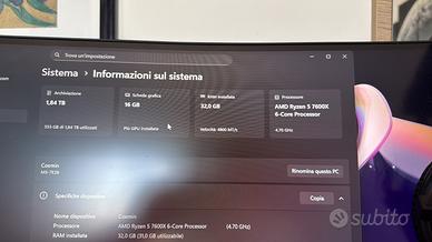 Pc gaming come nuovo usato veramente pochissimo Processore AMD Ryzen 5 7600X 6-Core Processor (4.70 GH2) RAM installata 32.0 GB Scheda grafica RX 7800xt Se vereamente interessati chimare