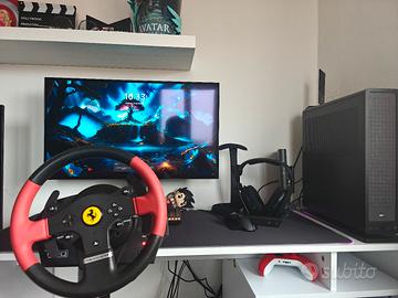Vendo postazione completa tutto quello che vedete in foto: PROCESSORE:RYZEN 7 7800X3D GPU: RTX 4070 SUPER RAM: 32 GB RAM CORSAIR DDR5 SCHEDA MADRE:ASUS ROG STRIX B650E-I wifi CASE:Fractal Ridge DISSIPATORE:Noctua LHL9X65 SSD:980 EVO SAMSUNG 1T PERIFERICHE: MONITOR:Asus ROG XG27AQDMG OLED TASTIERA:ROG Falchion Ace nera MOUSE: LOGITECH G 502 HERO CUFFIE:ASTRO A50 4GEN VOLANTE:THRUSMASTER T150 + pedaliera con tre pedali Tappeto: Corsair