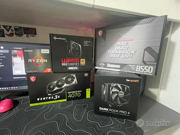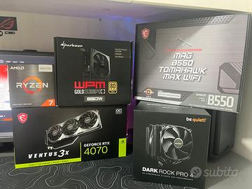 VENDO PC USATO 1 anno. PRONTO VENDITA 7GG SU 7 MOTIVO VENDITA: acquisto di pc piu potente. SCHEDA TECNICA: CPU: AMD Ryzen 7 5700X3D GPU: MSI GeForce RTX 4070 VENTUS 3X 12GB RAM: 16 GB DDR4 SSD: Kingston 1 TB NVMe Dissipatore: be quiet! Dark Rock Pro 4 Case: Sharkoon VK4 Rainbow PSU: WPM GOLD ZERO 650W CERTIFICATO 80 PLUS GOLD SHARKOON MOTHERBOARD: msi MAG B550 TOMAHAWK MAX WIFI WINDOWS 11 PRO GIA INSTALLATO condizioni: PC COME NUOVO ED ECCEZIONALE PER GIOCHI COME FORTNITE E CON COMPONENTI POTENTISSIMI SUPERANDO ANCHE I 360 fps CONSEGNATO CON TUTTE LE SCATOLE COME NELLA FOTO MANCANTE QUELLA DEL CASE solo vendita a mano zona monza lombardia con possibilita di prova prima dell’acquisto PREZZO NON TRATTABILE