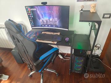 Vendo postazione completa PC gaming composto da tavolo per PC sedia da gaming PC con scheda video Nvidia rtx 4060 processore Intel core i5 13400f 2 dddr5 da 16giga scheda madre pro B760M-P rafredato ad aria da 5 ventole RGB mai avuto problemi di surriscaldamento 1T di memoria