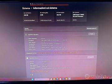 Splendido PC da Gaming "White Edition", assemblato con cura per offrire prestazioni elevate e un'estetica mozzafiato grazie al sistema di illuminazione RGB sincronizzato e ai cavi sleevati bianchi. Il PC è pronto all'uso, pulito e testato. ⚙️ SPECIFICHE TECNICHE: • Processore (CPU): AMD Ryzen 5 1600X (6 Core / 12 Thread, fino a 4.0GHz in Turbo). Prestazioni solide per gaming e multitasking. • Scheda Video (GPU): NVIDIA GeForce RTX 2070 (8GB GDDR6). Perfetta per giocare in 1080p e 1440p a dettagli alti, supporta Ray Tracing e DLSS. • Memoria RAM: 20GB DDR4. Configurazione ideale per gestire giochi pesanti e software di editing senza rallentamenti. • Scheda Madre: B450 AORUS ELITE (Socket AM4). Una delle migliori basi per stabilità e possibilità di upgrade futuri. • Archiviazione: SSD da 240GB per un avvio fulmineo di Windows e delle applicazioni. • Sistema Operativo: Windows 11 Pro già installato, attivato e aggiornato. • Raffreddamento e Case: Case panoramico con pannello in vetro temperato, 7 ventole LED RGB per un airflow perfetto e temperature sempre basse (come visibile dai test in foto, GPU a soli 28°C in idle). ✨ PUNTI DI FORZA: • Estetica Premium: Cavi bianchi personalizzati, dissipatore RGB e ventole sincronizzate per un look pulito ed elegante. • Affidabilità: Componenti selezionati e testati. Il PC non scalda ed è estremamente silenzioso. • Supporto GPU: Incluso braccetto di sostegno verticale per evitare il sagging della scheda video e preservare la scheda madre. 🚚 CONSEGNA E SERVIZIO: Massima serietà e disponibilità. Offro la possibilità di consegna a domicilio direttamente a casa vostra per aiutarvi con il primo avvio. (Nota: Servizio disponibile per distanze ragionevoli nella zona, da concordare preventivamente). Disponibile per qualsiasi prova o test dal vivo presso il mio domicilio prima dell'acquisto. Non esitate a contattarmi per ulteriori foto o informazioni tecniche. PREZZO 450€ ZONA PORCIA/PORDENONE