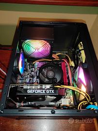 In un case nuovissimo e molto carino della Mars Gaming con pannello laterale trasparente, linea led scorrevole anteriore e 2 ventole FRGB, con processore AMD Ryzen 5 2400G su scheda madre ASUS A320M-K, con 16 GB RAM DDR4 Patriot 3200 MHz (2 banchi da 8 GB), ed SSD Samsung NVME da 256 GB per Windows 11 Ghost Spectre + Hard Disk da 1 TB Seagate ST1000 per i dati, con scheda video integrata Radeon Vega11 e 3 opzioni di configurazione, il tutto ben assemblato e silenziosissimo.Il PC è acquistabile in tre opzioni/modalità, la prima per chi vuole utilizzarlo per uso ufficio/gaming leggero sfruttando la scheda grafica integrata nel processore, Vega11 (oppure per chi ha già disponibile una scheda video che vuole montarci) è senza scheda da gaming e con alimentatore Antec da 400 Watt, ed il prezzo è di 300 euro. La seconda opzione è con scheda grafica GTX 1050 2 GB per gaming con Fortnite e giochi simili sempre con alimentatore Antec da 400 watt ed il prezzo è di 335 euro. La terza opzione è come nella foto con scheda video per gaming più spinto PNY GTX 1660 Super 6 GB ed alimentatore da 550 Watt ed il prezzo è di 400 euro.